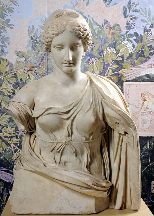 La mostra, grazie a capolavori archeologici della Magna Grecia e dell’arte romana, per arrivare a Tiepolo, Tintoretto ad Auguste Rodin a Salvador Dalì, segue le diverse fasi del racconto di Apuleio – dalla passione alla serenità raggiunta attraverso la speranza. Il racconto prende le mosse dalla rivalità nel nome della bellezza. Psiche, nuova Afrodite terrestre, crea inconsapevolmente un sovvertimento dell’ordine cosmico e mina l’armonia stessa del mondo degli dei. Dall’altro canto, Afrodite – dea della bellezza e dell’amore, che presiede alla fertilità del cosmo su cui agisce la potenza creatrice di Eros – è indignata per l’umana superbia di una mortale che vuole competere con il suo fascino.