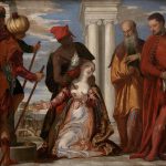 La sorprendente familiarità che legò professionalmente Paolo Caliari detto il Veronese (1528-1588) a Padova, ebbe inizio a partire dalla metà degli anni ’50, soprattutto grazie alla lungimirante committenza dei benedettini, producendo nuova energia nello sviluppo figurativo della zona. Nella fase della prima maturità dell’artista, su commissione del Vescovo di Padova, Francesco Pisani, il Caliari realizzò la Trasfigurazione per l’altare del Duomo di Montagnana. Dello stesso periodo è anche l’incantevole Martirio di Santa Giustina, con cui si apre l’esposizione agli Eremitani: il dipinto ha una particolare valenza storica, in quanto innesta il prolifico legame dell’artista con i benedettini.